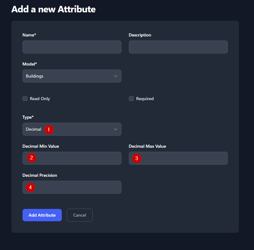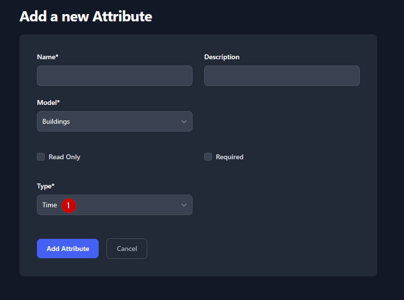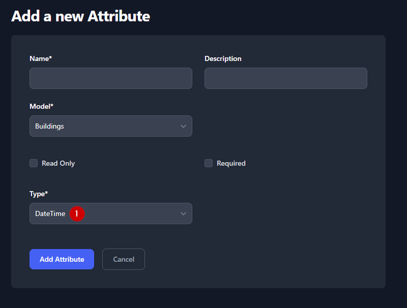 - Hier können neue Attribute erstellt werden, abhängig von den Berechtigungen.