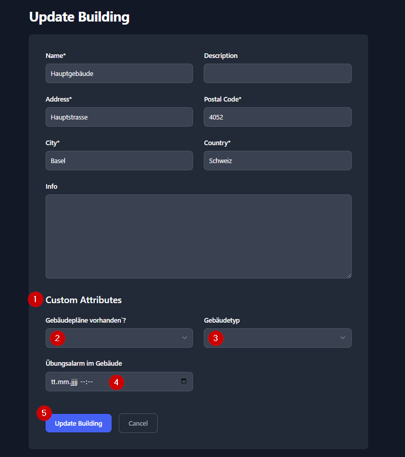 - Zum Abschluss drücken Sie auf Update Building, um die Änderungen zu speichern.