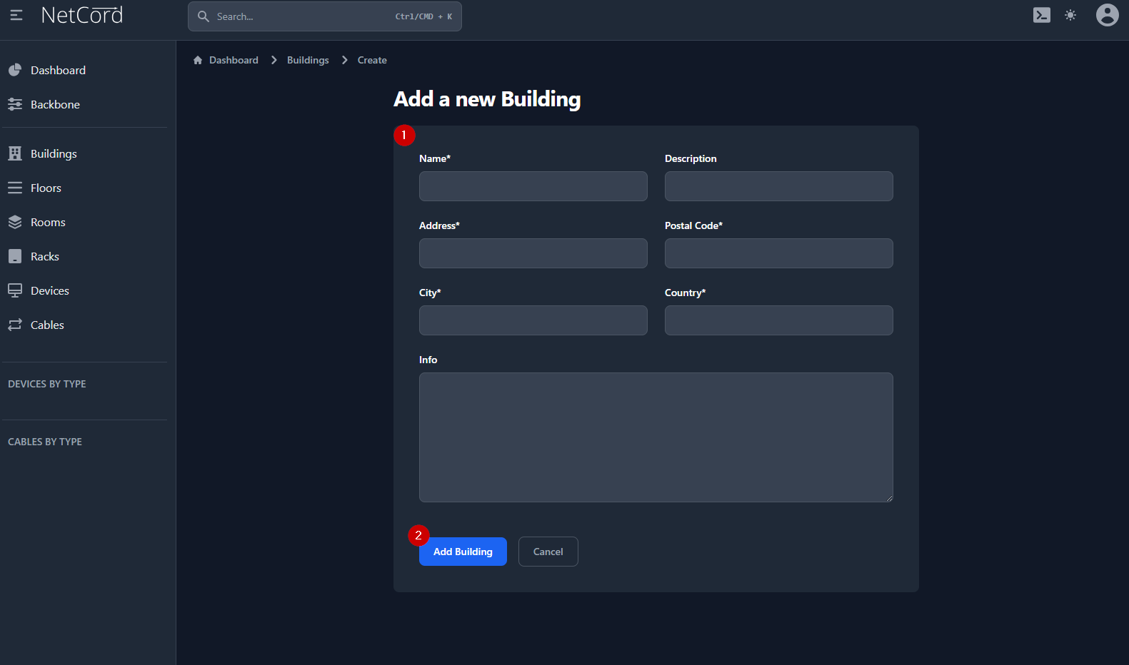 Nachdem alle Daten eingegeben wurden, auf "Add Building" klicken, um die Liegenschaft hinzuzufügen.