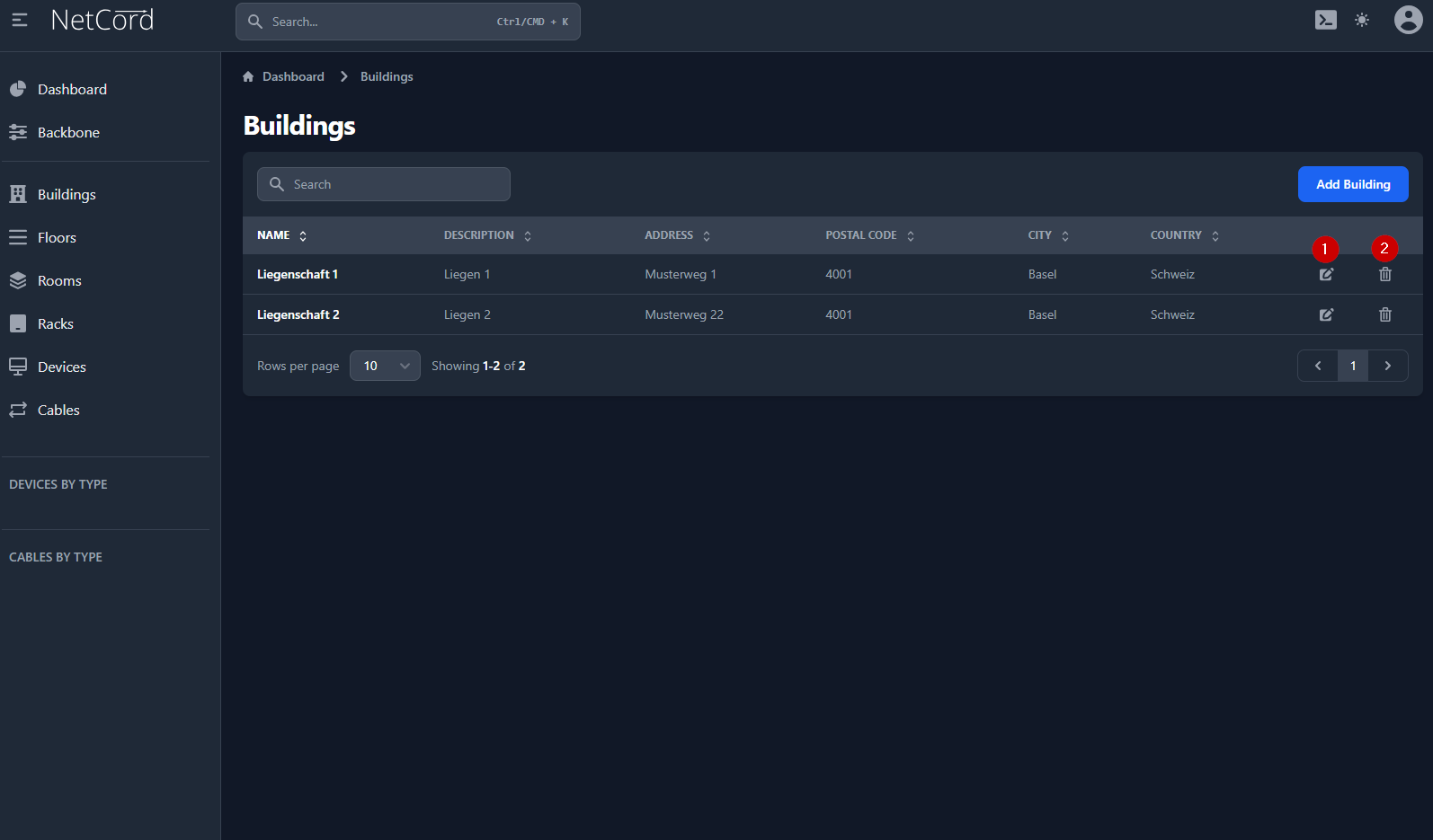 - Sofern berechtigt, kann mit dem Button "Add Building" eine weitere Liegenschaft hinzugefügt werden.