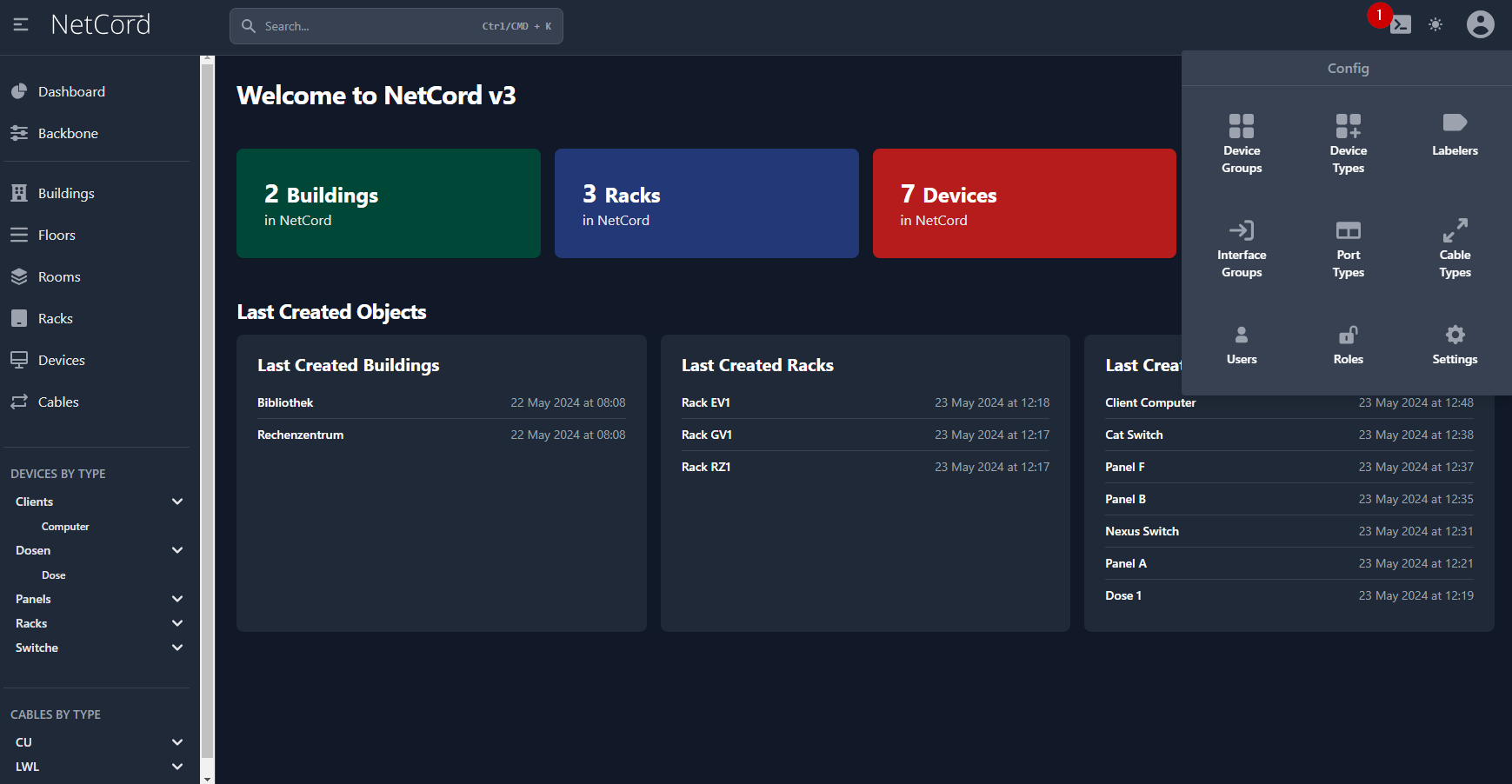 - Oben rechts gelangen sie in das Config (Einstellungen) Fenster.