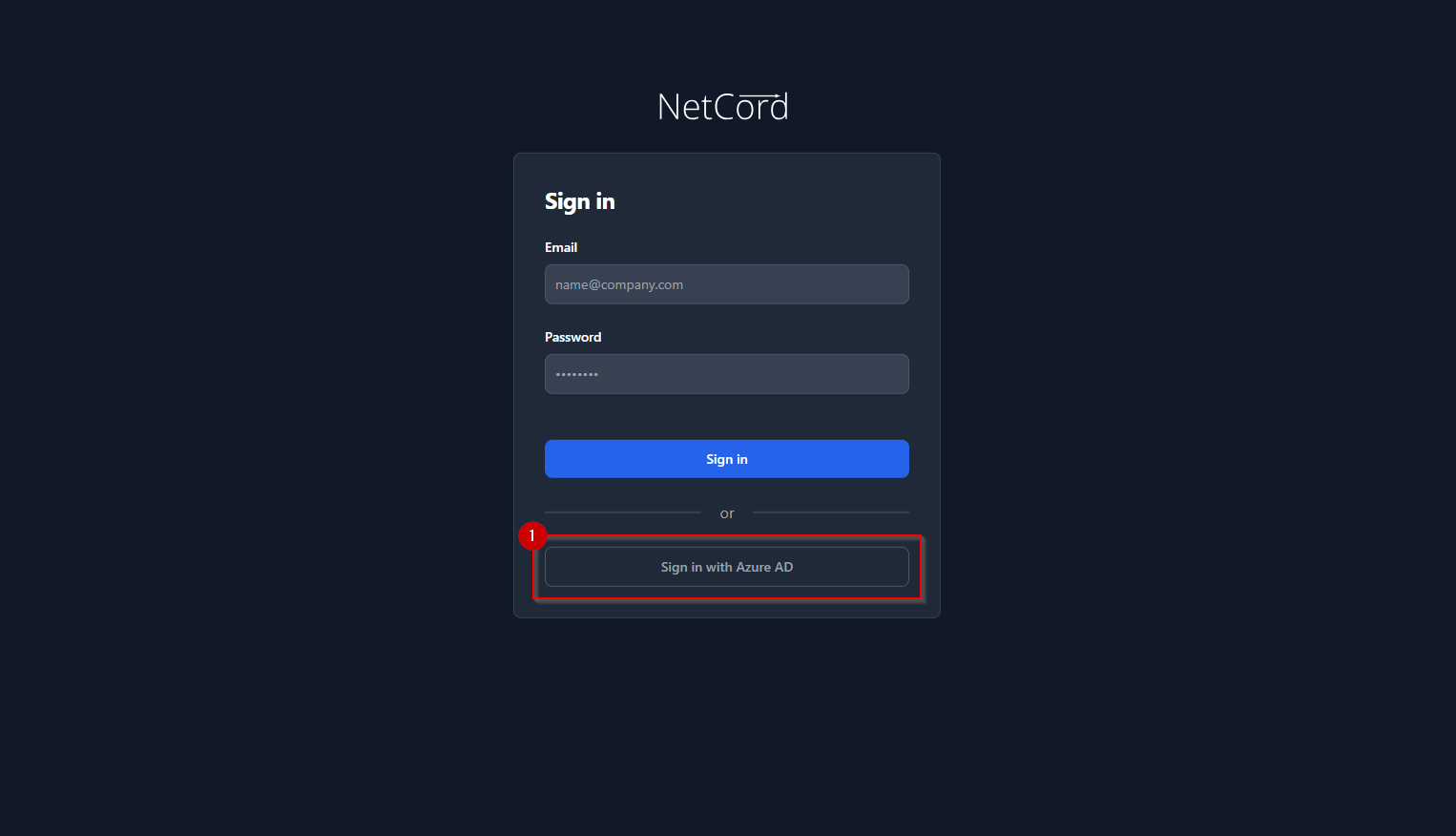 Klicken Sie auf die Schaltfläche „Sign in with Azure AD“ (Anmelden mit Azure AD), wenn Ihr Unternehmen über Azure Active Directory (AD) angebunden ist. Falls Ihr Unternehmen nicht mit Azure AD verbunden ist, geben Sie Ihre E-Mail-Adresse und Ihr Passwort ein, um sich mit einem lokalen Benutzerkonto anzumelden.